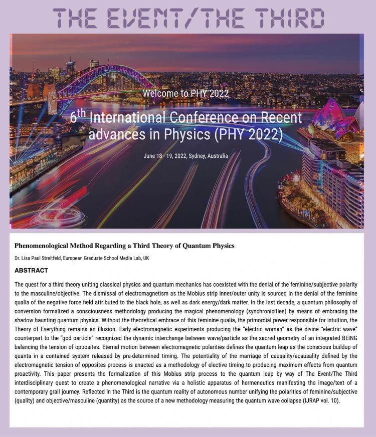 An outgrowth of a six-year (R)EVOLUTION Series (2010-2017) for Huffington Post Arts which disseminated a holistic art theory around the globe through art reviews created in cyberspace, THE SAAS FEE EVENT catalyzed by Alain Badiou himself, the quantum leap into the Third as culmination of the EGS Media Lab founded and directed by Wolfgang Schirmacher (1998-2014).