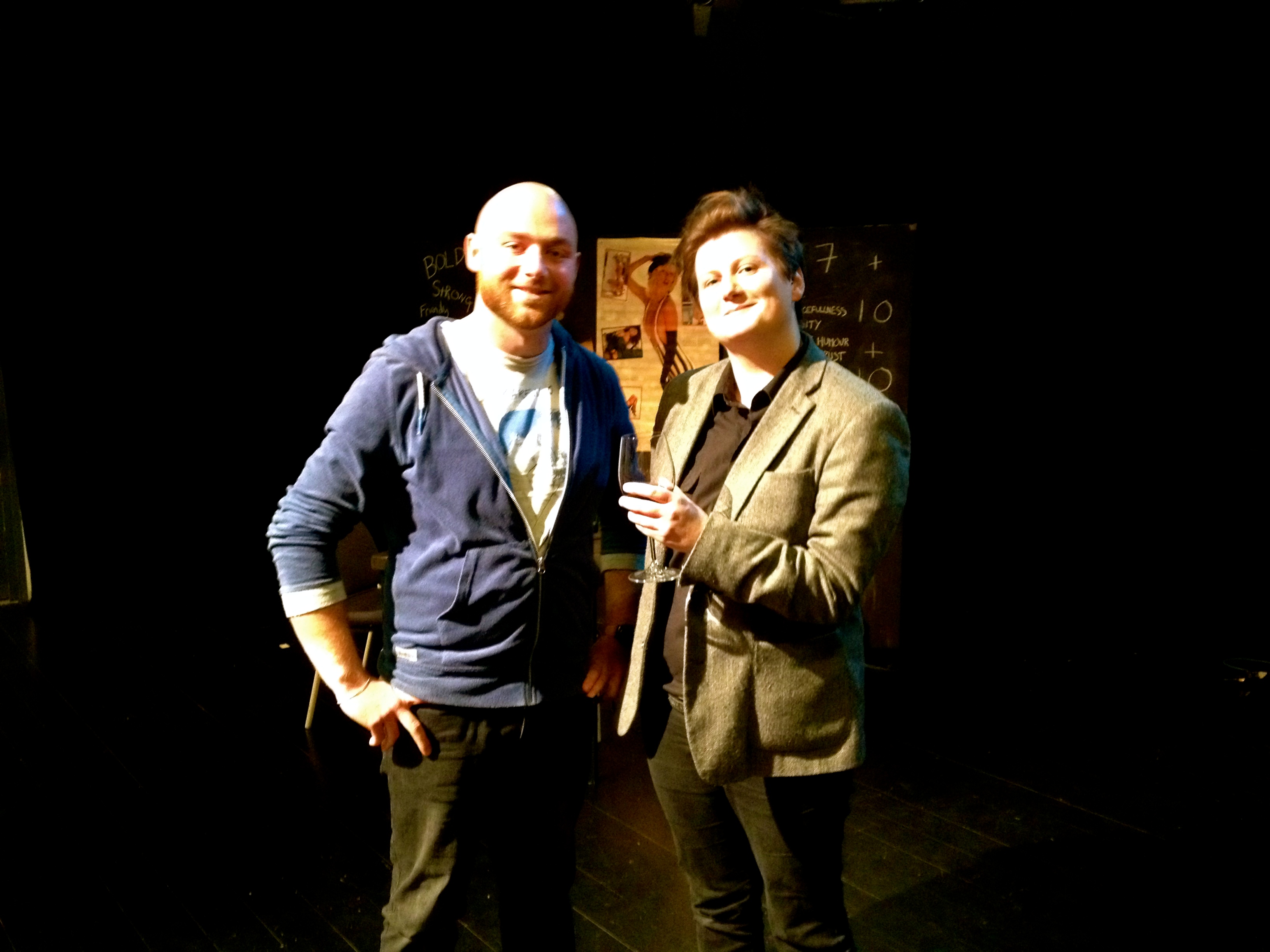 With their first production at Daniel Brunet’s new 3.0 vision at the English Theater in Berlin, A Fish Needs a Bicycle expands the boundaries of theater by introducing a third character of uncertainty: Twitter. The chilling real time window into the hate generated lower vibration cyberspace projected into the spare set just hints at the intervention this male-female team pulled off while trolling the undercurrent of cyber misogyny masquerading as “Meninists” seeking male rights.