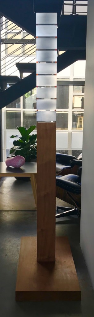 Zadikian articulates his vocabulary of the sacred marriage in the complementarity of opposites. An example here is Stacks in gold (Sun) and aluminum/copper (Moon/Venus).