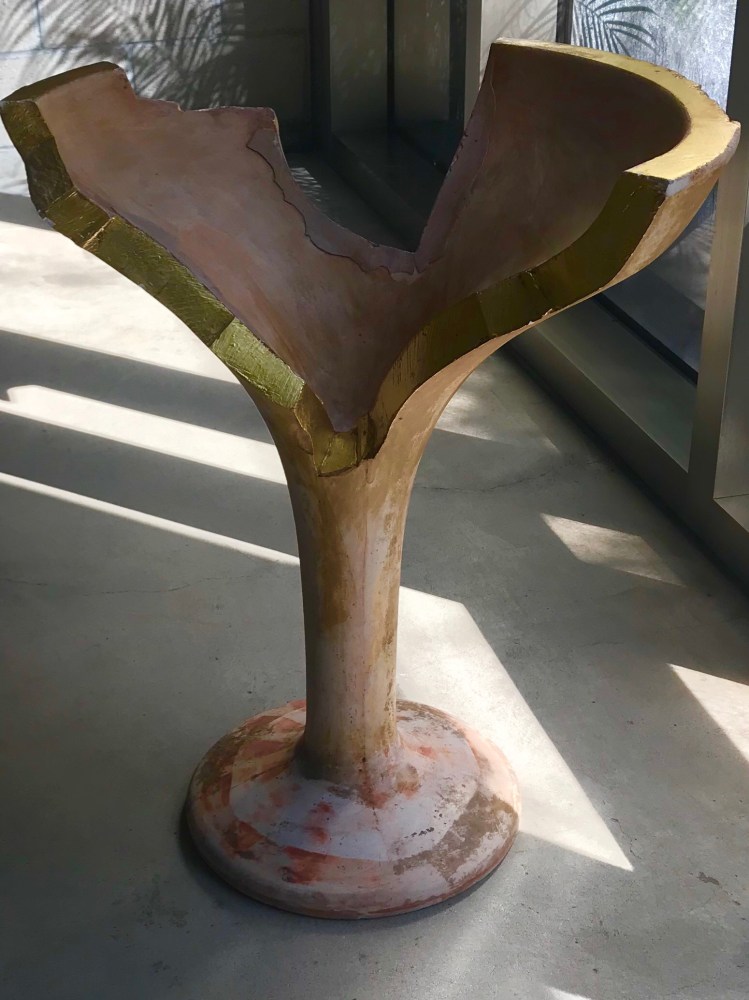 “Gold having become his unifying material, like an alchemist he transmuted everything into this noble metal — from ancient stone reliefs to alien like figures. These auric works recreated worlds beyond the realm of everyday thought, bordering on the threshold of the Timeless and the Eternal,” writes Shafrazi. “His concerns with art dive into nature’s most fundamental structures. Units of everlasting elegance on which higher forms are born, always paradoxically mixing the extravagant with the simplest of form.”
