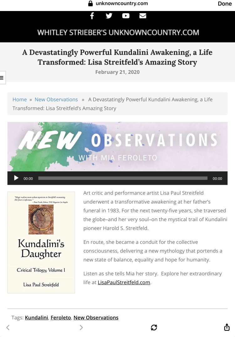 Lisa Streitfeld discusses her Kundalini Experience with New Observations publisher Mia Feroleto