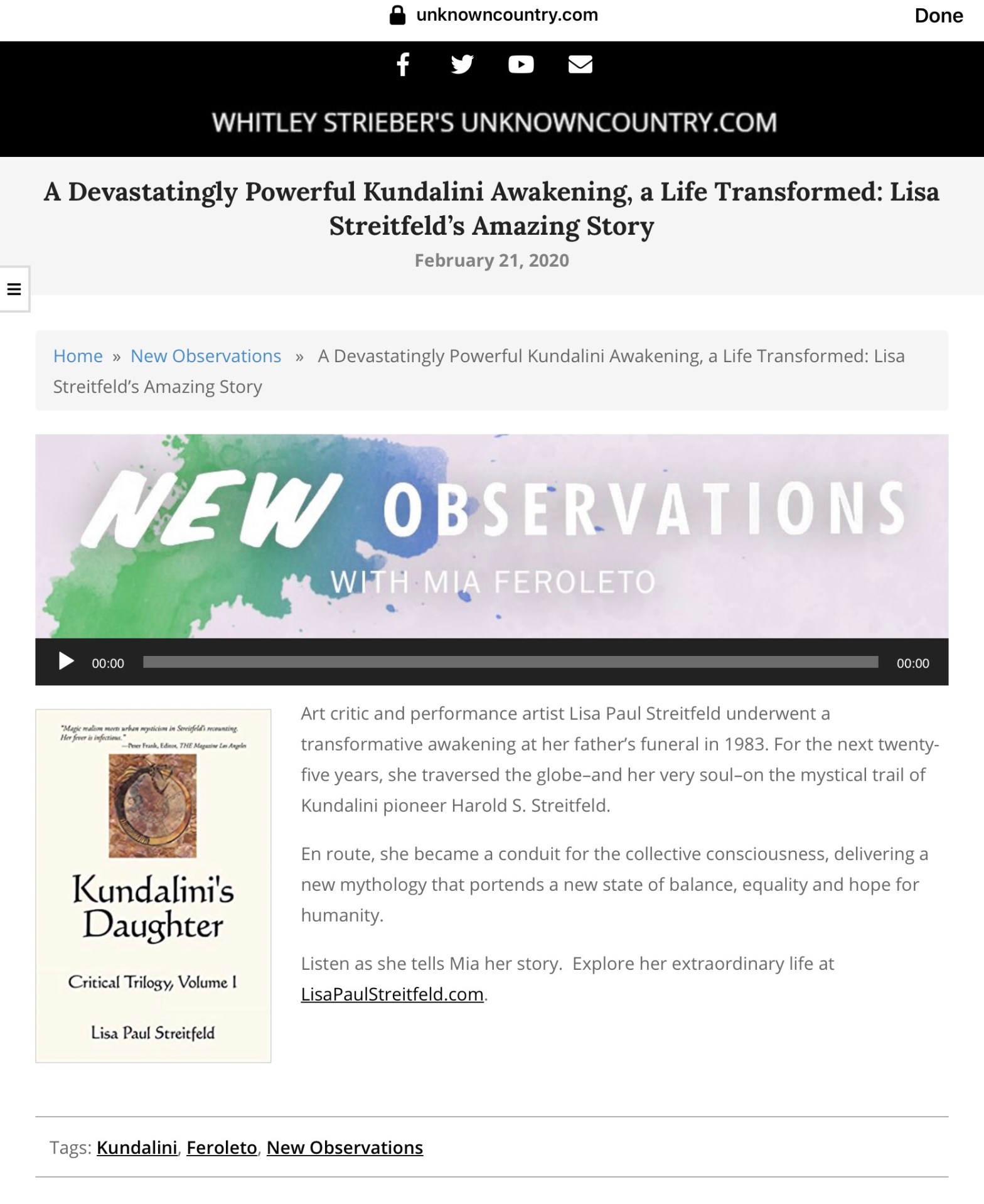 Lisa Streitfeld discusses her Kundalini Experience with New Observations publisher Mia Feroleto