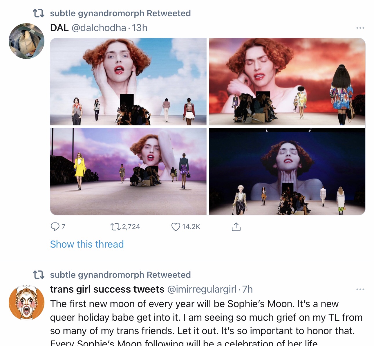 This Twitter post after the newsmor her death establishes that Sophie’s coming out as transgender in Heaven is already serving as the icon of a new transgender momentum in fashion.